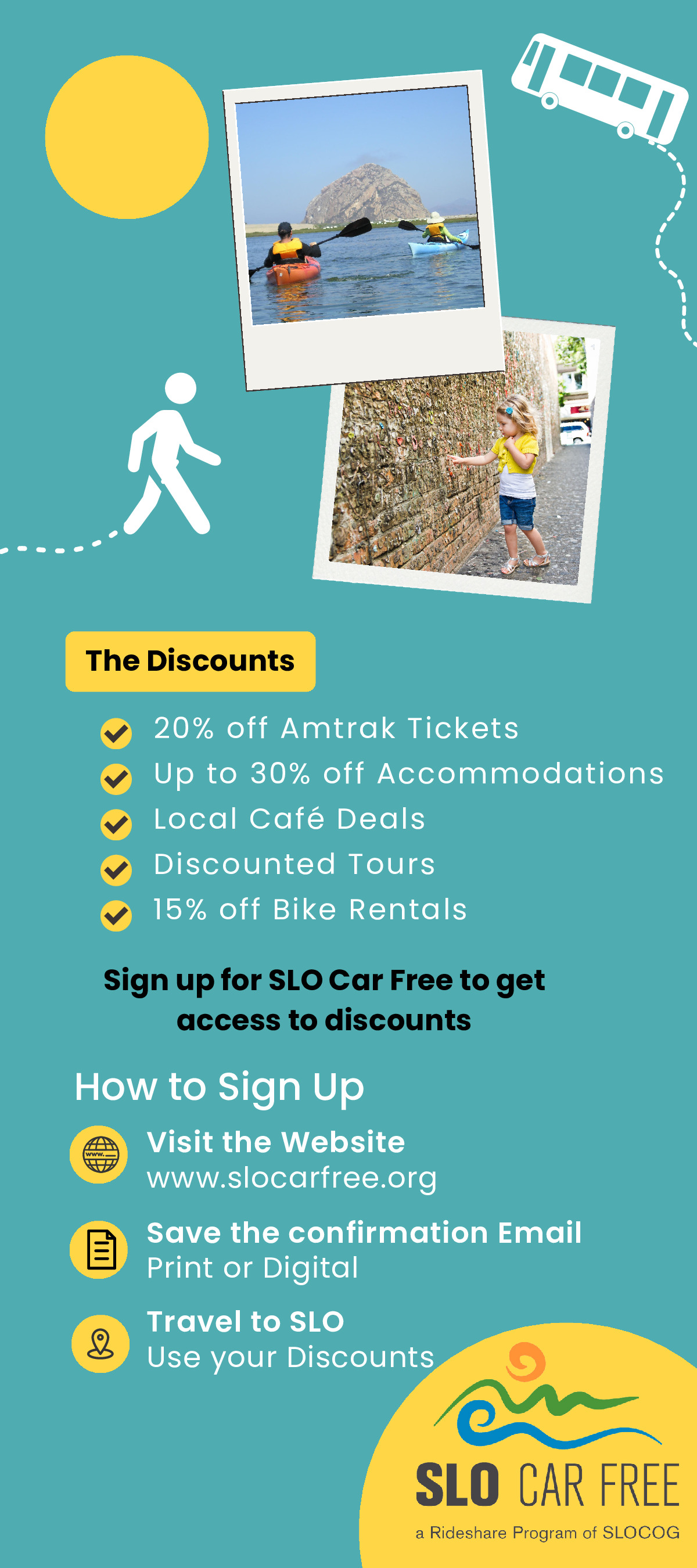 Visit SLO without a car and receive discounts on travel, places to stay, and things to do!