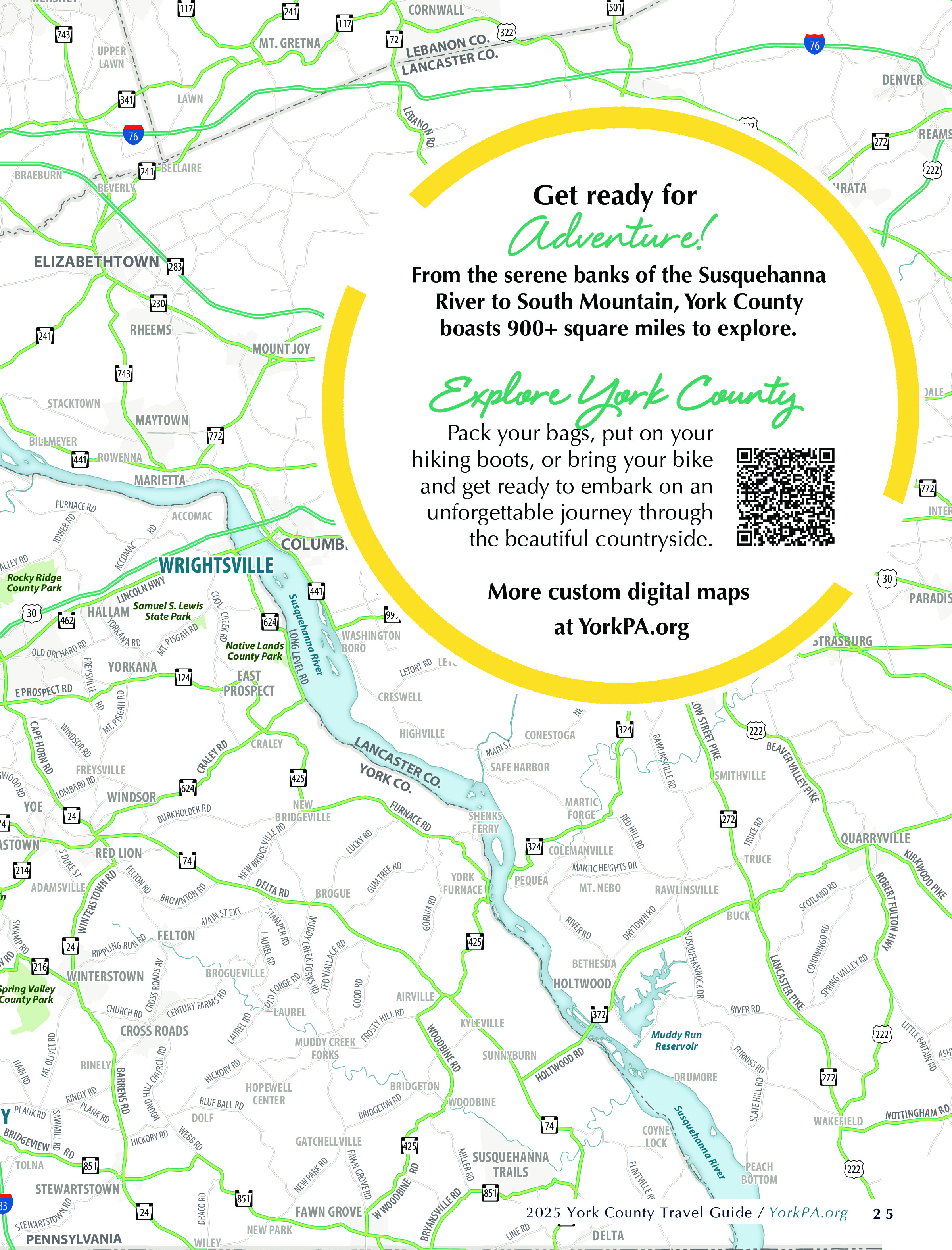 Nestled in the heart of South-Central Pennsylvania, York County is a treasure waiting to be explored. Whether you’re a history enthusiast, an outdoor adventurer, or a lover of local culture, this charming county has something special for everyone. Step back in time with visits to the York County History Center, the iconic Colonial Courthouse, and the Goodridge Freedom Center and Underground Railroad Museum—places where stories of resilience and freedom come to life.